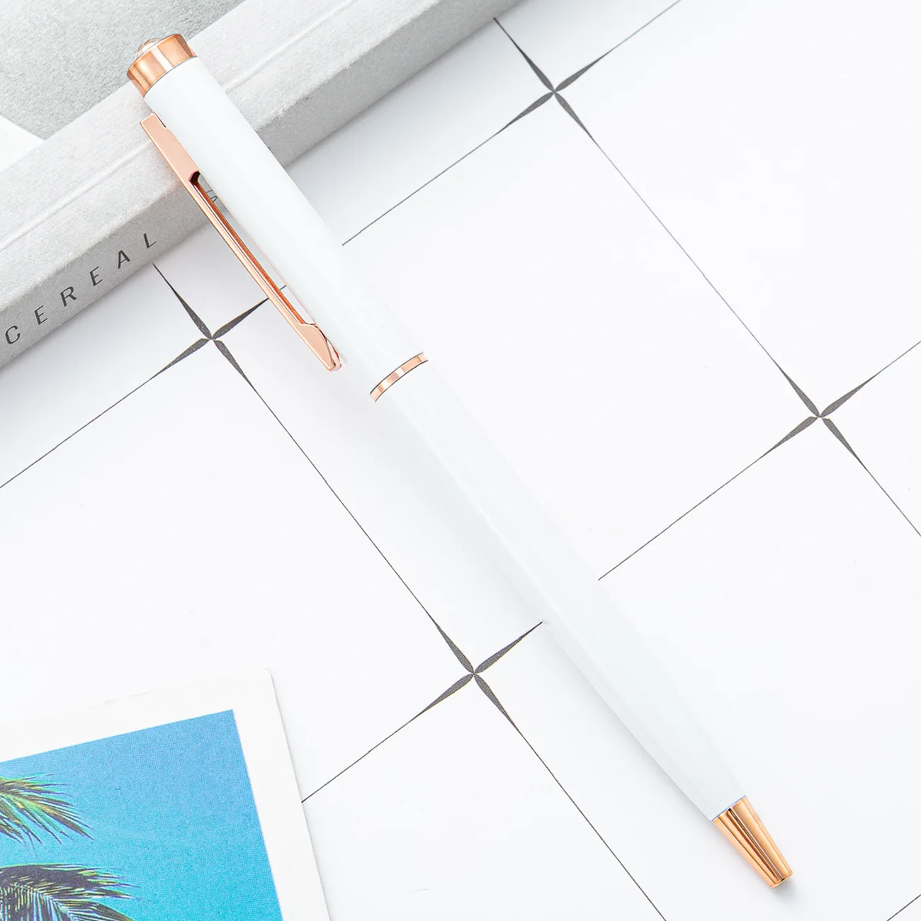 Crafted with a sleek metallic body and rose-gold detailing, each pen writes smoothly, feels lightweight in the hand, and adds a stylish finish to your stationery collection.